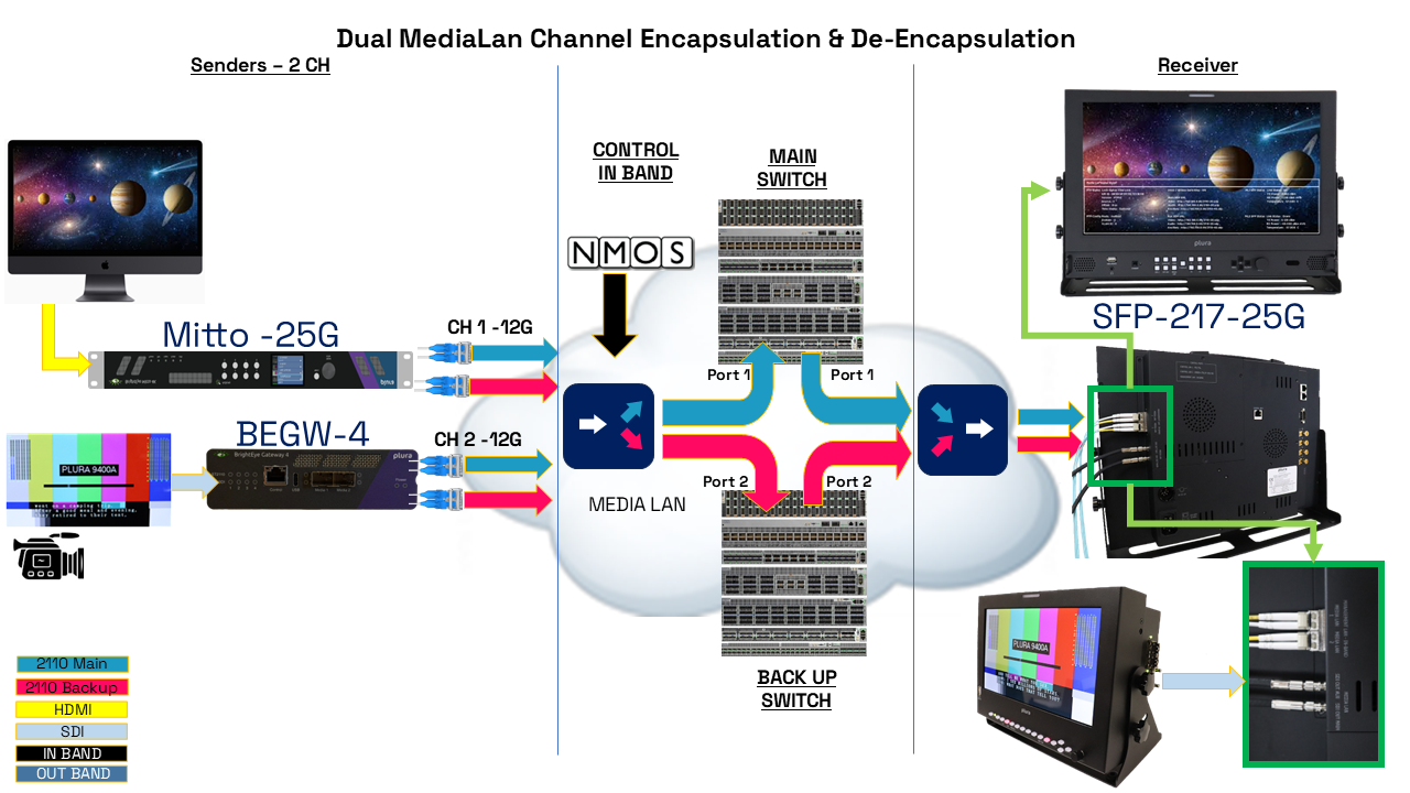 Please note that Plura SFP-25G and SFP-25G-H IP monitors support the AMWA IS-04 and IS-05 specifications. IS-04 enables device discovery and registration, while IS-05 manages device connections. These monitors are officially listed as NMOS/AMWA-approved media nodes at the link here.