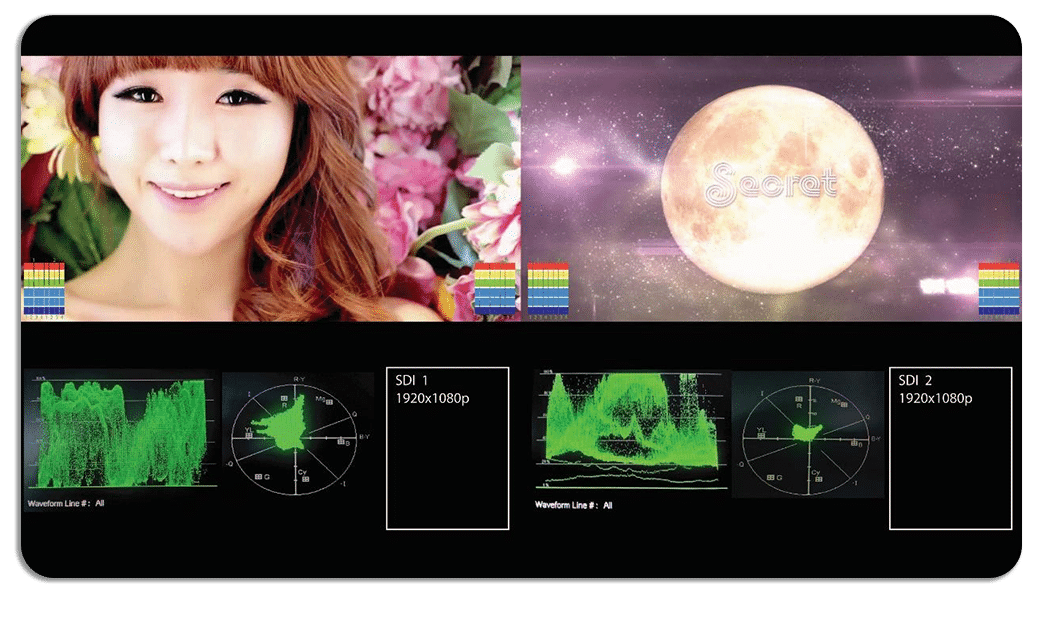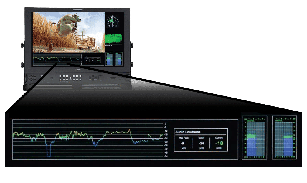 NEW & Advanced features take Master Control monitoring to a higher and unmatched Level. Plura selected monitors support “QC Dashboard” that include WF/VS, Audio meters, (Closed Caption Decoding) and an on screen LKFS measurement with logging!