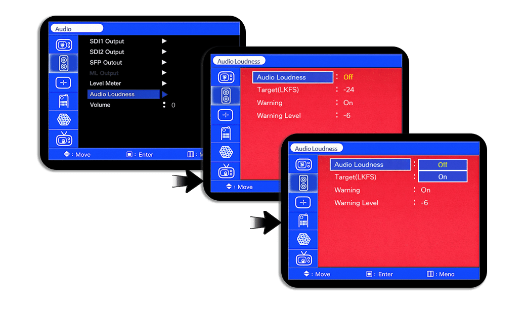 This monitor series support the popular Audio Loudness “LKFS” feature. The Audio Loudness can be accessed via Audio Menu as well as the FUNCTION key.LKFS and QC Dashboard capabilities